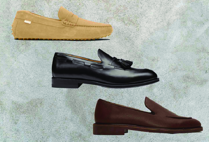 A look at a few popular types of men’s shoe styles: loafers, sneakers, flip flop /open toe