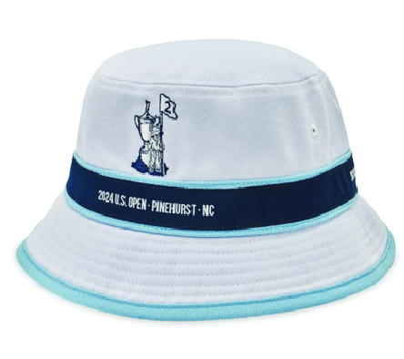 In terms of accessories, visors are incredibly popular in both golf and tennis fashion at the moment. Check out Tombolo, Alo Yoga, Imperial, and the ever popular Titleist. They not only provide protection from the sun but also add a stylish touch to any outfit. Adjustable caps with fun slogans or logos are also gaining popularity amongst younger players. And let’s not leave out the bucket hat! Nike made a splash last year at the US Open in Flushing Meadows when Carlos Alcaraz donned this trendy piece. As you can see above golfers have nabbed onto the bucket hat for this year’s US Open in Pinehurst.